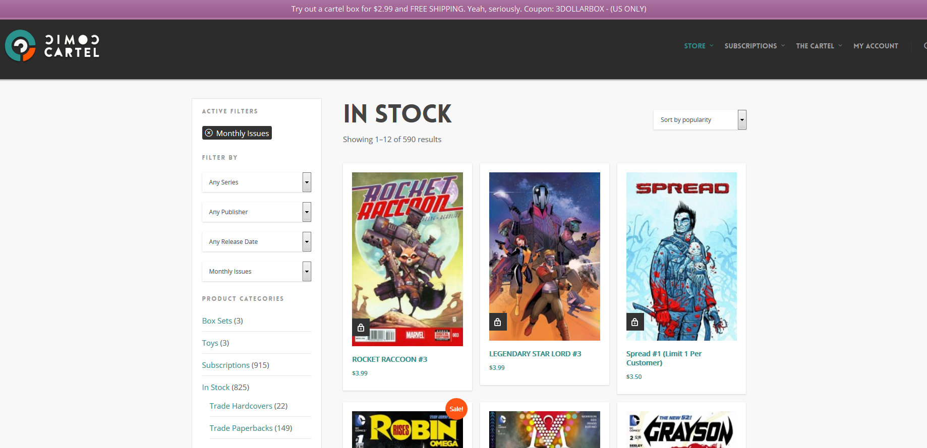 Comic Cartel is an example of a website built with WooCommerce. A fun and frequently updated online destination for comic connoisseurs.