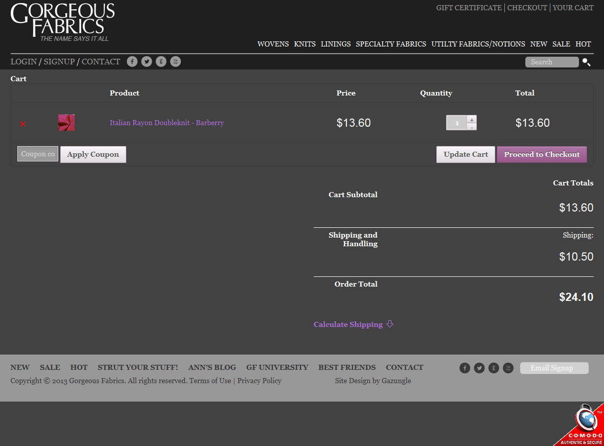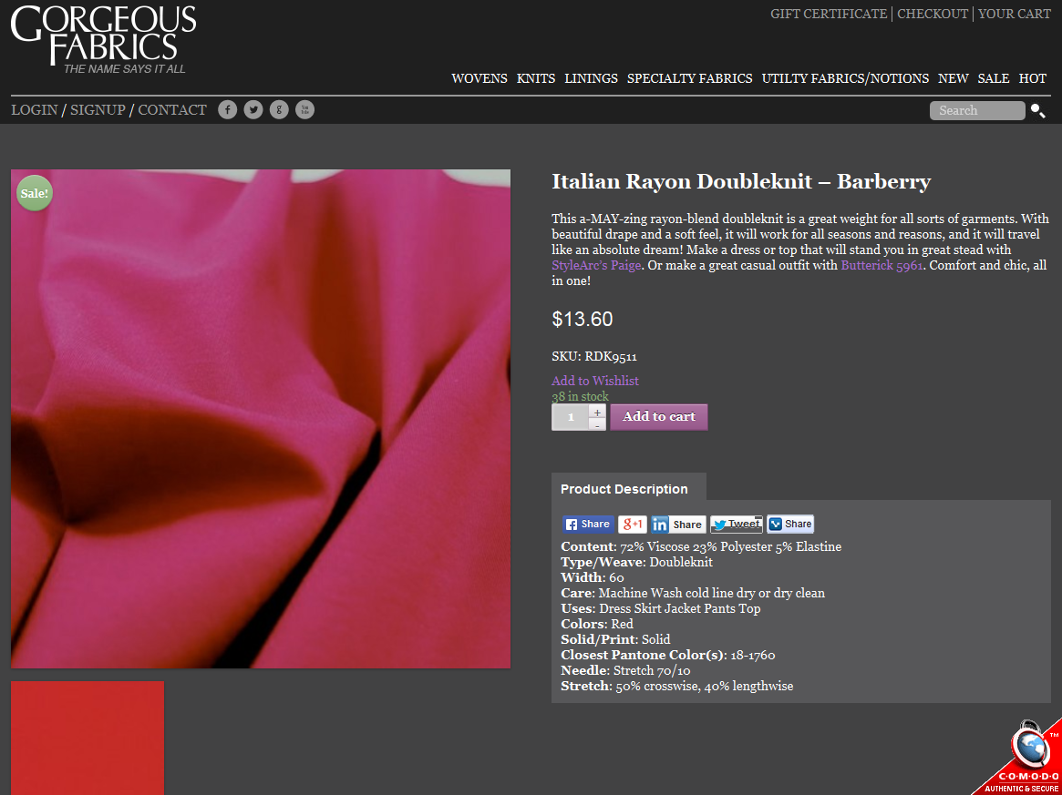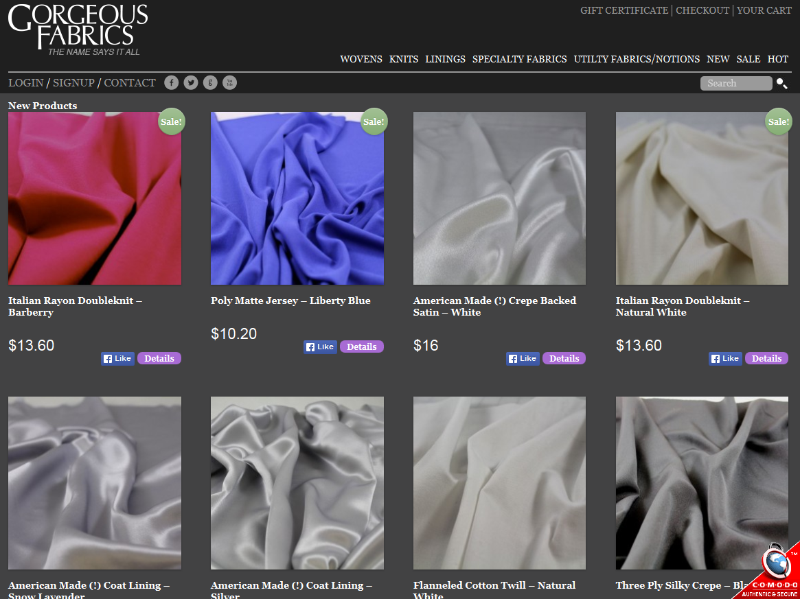 Gorgeous Fabrics Category Product Cart Checkout Gorgeous Fabrics is an example of a website built with WooCommerce. Share this: Click to share on X (Opens in new window) X Click to share on Tumblr (Opens in new window) Tumblr Click to share on Pinterest (Opens in new window) Pinterest Click to share on Facebook (Opens in new window) Facebook